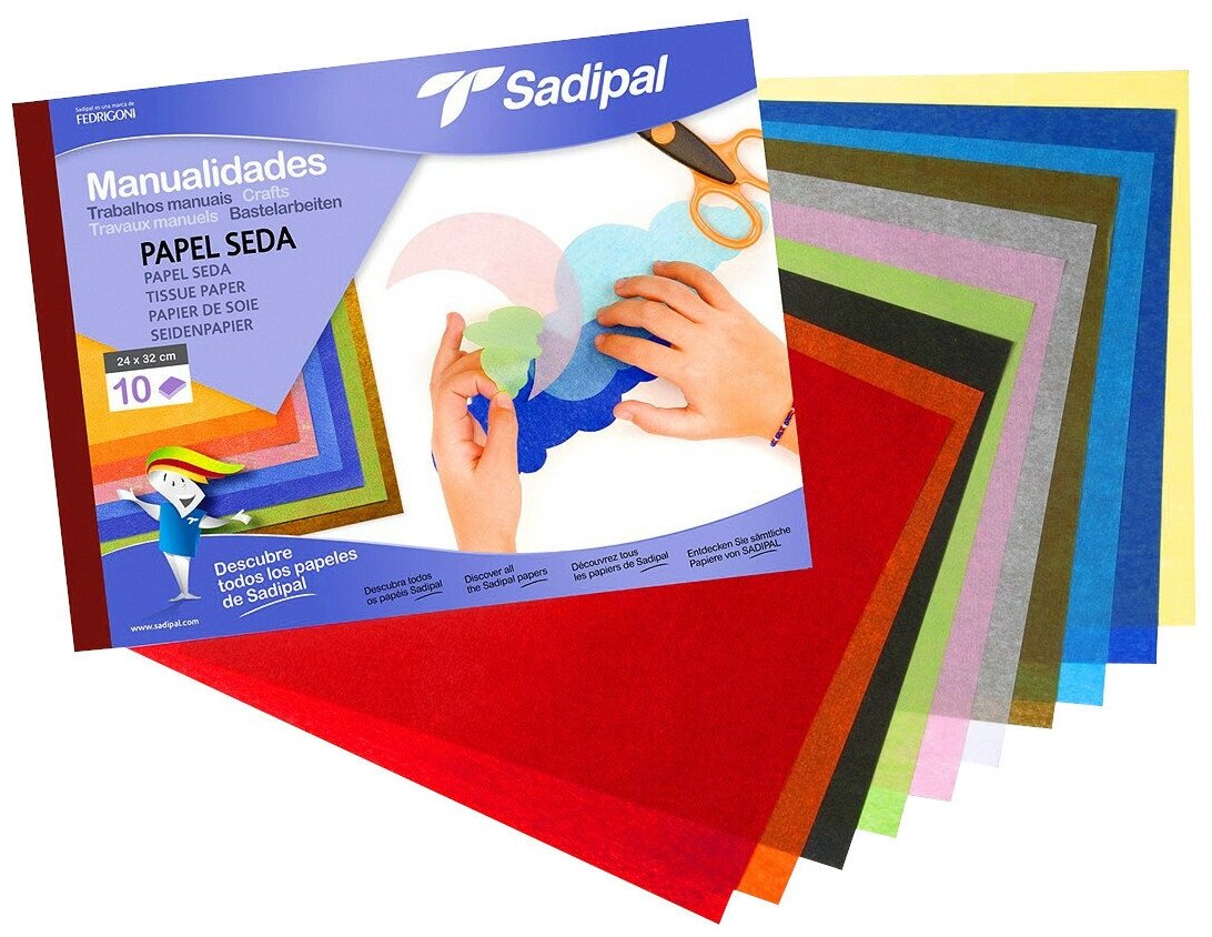 Бумага цветная, Тишью (шёлковая), А4+ 240 х 320 мм, Набор 10 цветов, 17 г/м2 , Sadipal Sadipal 83234 . информация: