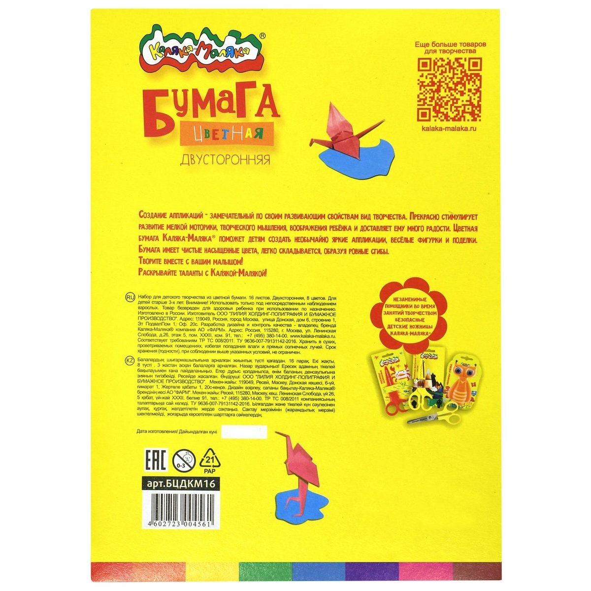 Бумага цветная двусторонняя Каляка-Маляка (16 листов, 8 цветов, А4) (БЦДКМ16), 40 уп. информация: