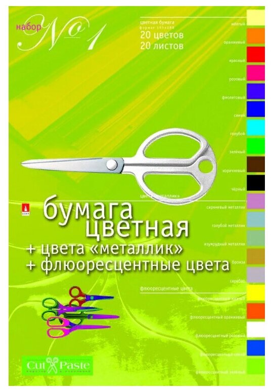 Набор цветной бумаги , HOBBY TIME № 1, А4 (205 х 295 мм), 20 листов, 20 цветов , "флуоресцентный + металлик", Арт. 11-420-36 информация: