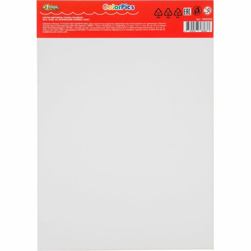 Картон цветной №1School 50л 10цвет А4 мелов ColorPics , склейка, пакет информация: