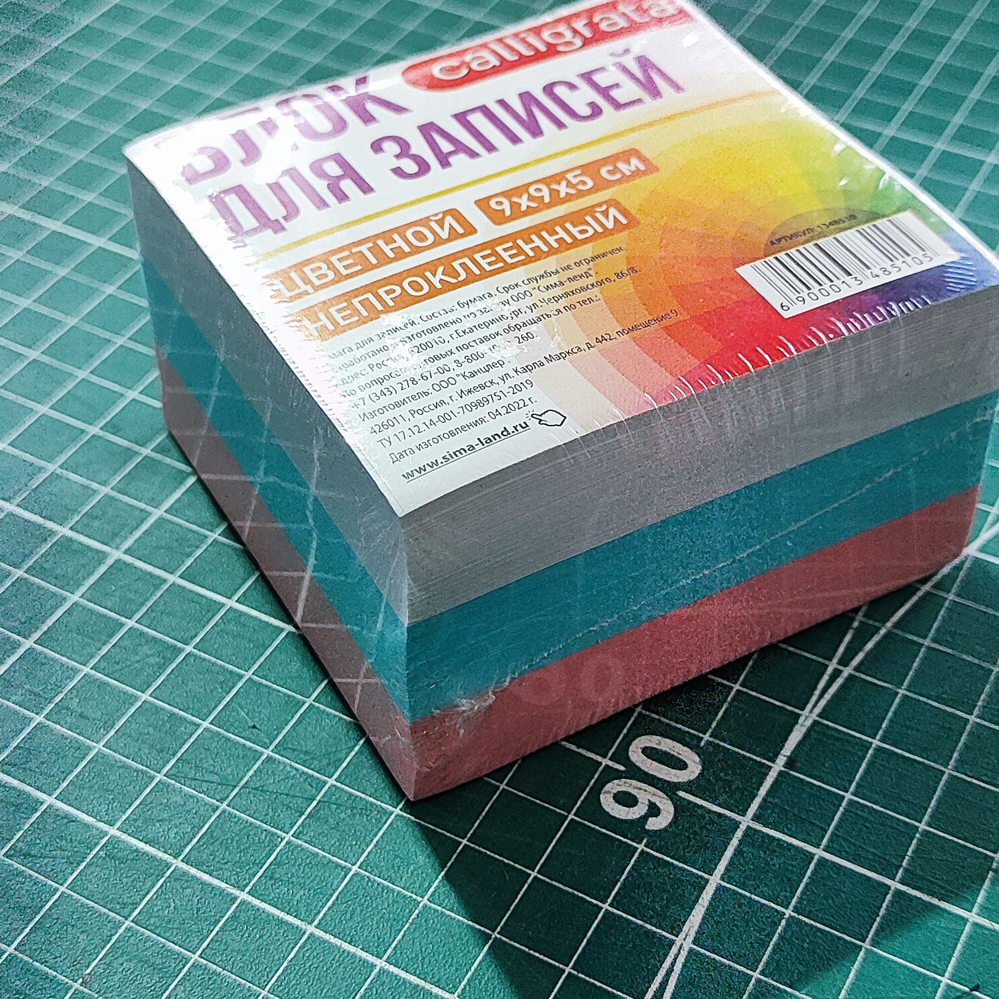 Блок бумаги для записей Calligrata "Триколор", 9x9x5 см, 80 г/м2, непроклеенный, цветной информация: