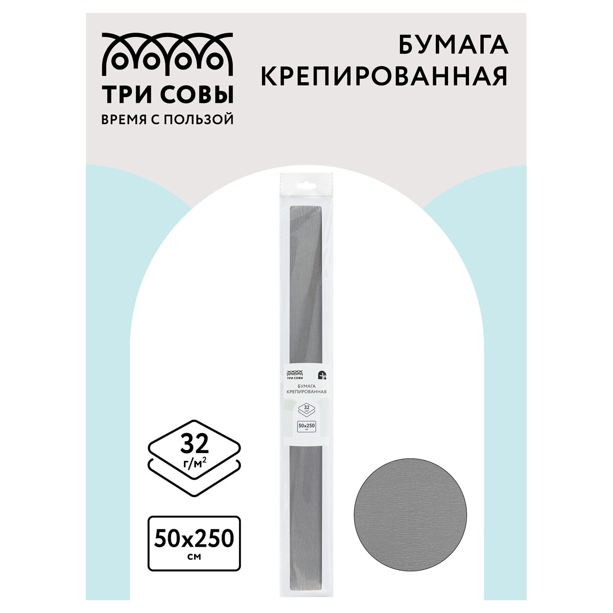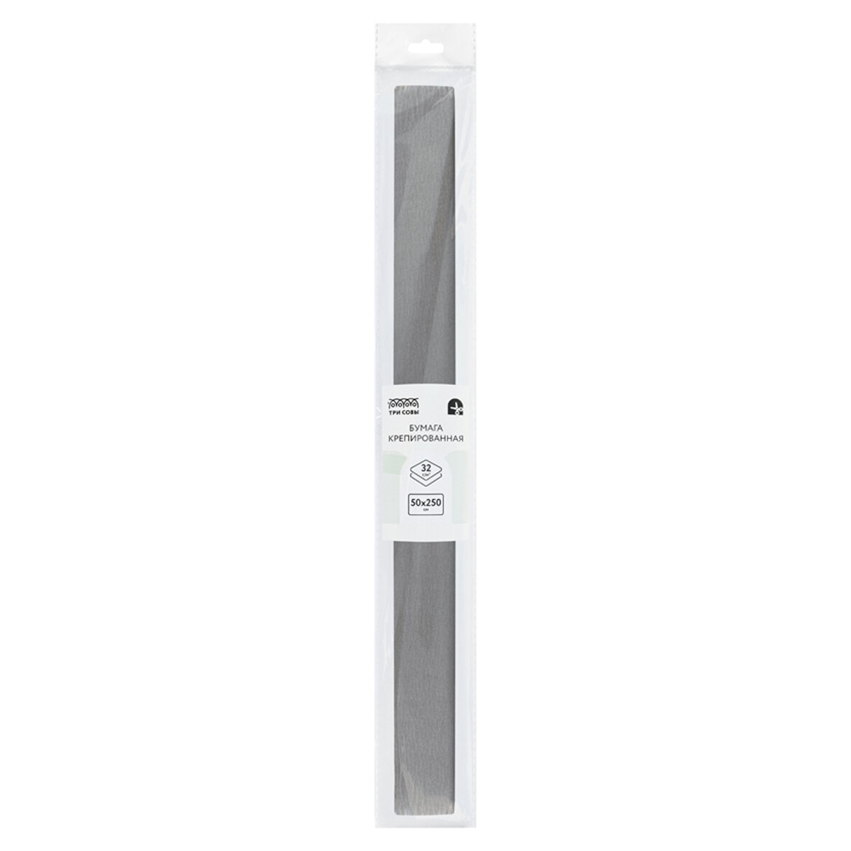 Бумага крепированная ТРИ совы, 50*250см, 32г/м2, серая, в рулоне, пакет с европодвесом, 10 штук информация: