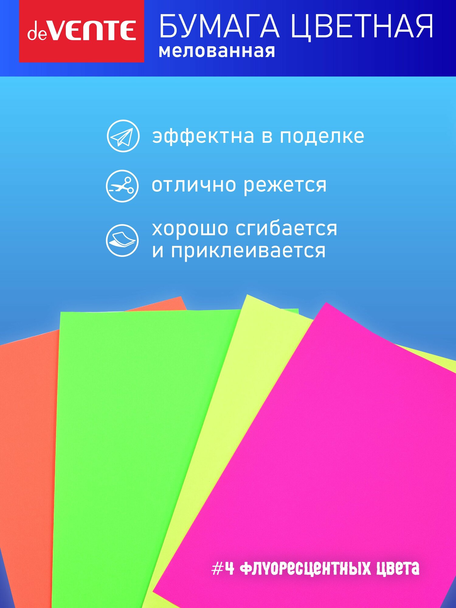 Мы выбрали 10 лучших цен на Бумага цветная мелованная флуоресцентная для поделок и творчества A4 80 г/м , A4, 4 цвета, 8 листов. Перед тем как купить Бумага цветная мелованная флуоресцентная для поделок и творчества A4 80 г/м , A4, 4 цвета, 8 листов посмотрите найденные предложения из Яндекс Маркета и других сайтов на основе XML фидов.