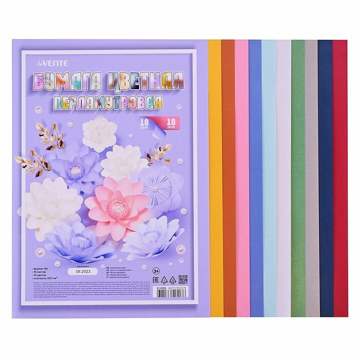 Цветная бумага deVENTE "Перламутровая", A4, 120 г/м2, 10 листов, пакет с европодвесом информация:
