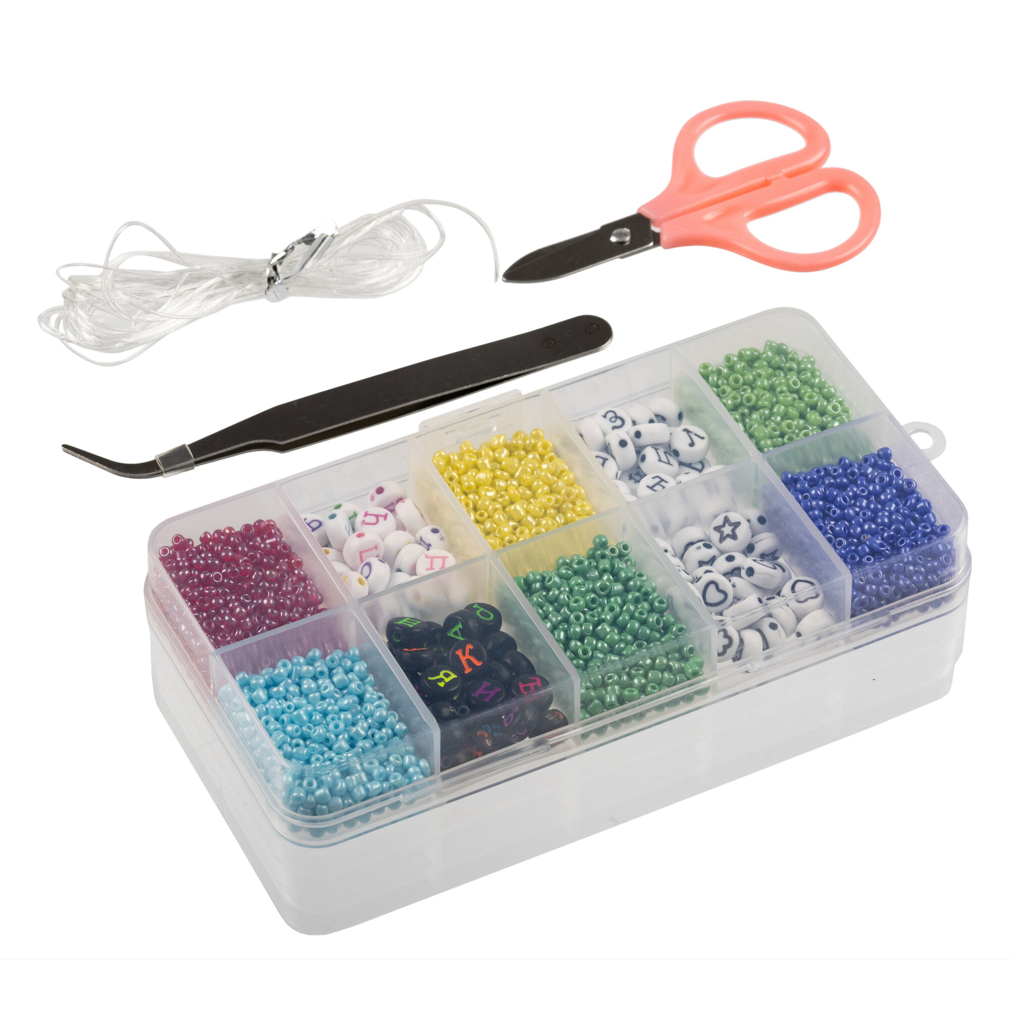 Большой набор 28 цветов бисера для плетения с силиконовой леской 0,8 мм и ножницами, размер органайзера 22,5 х 13,5 см BSD03/201288129