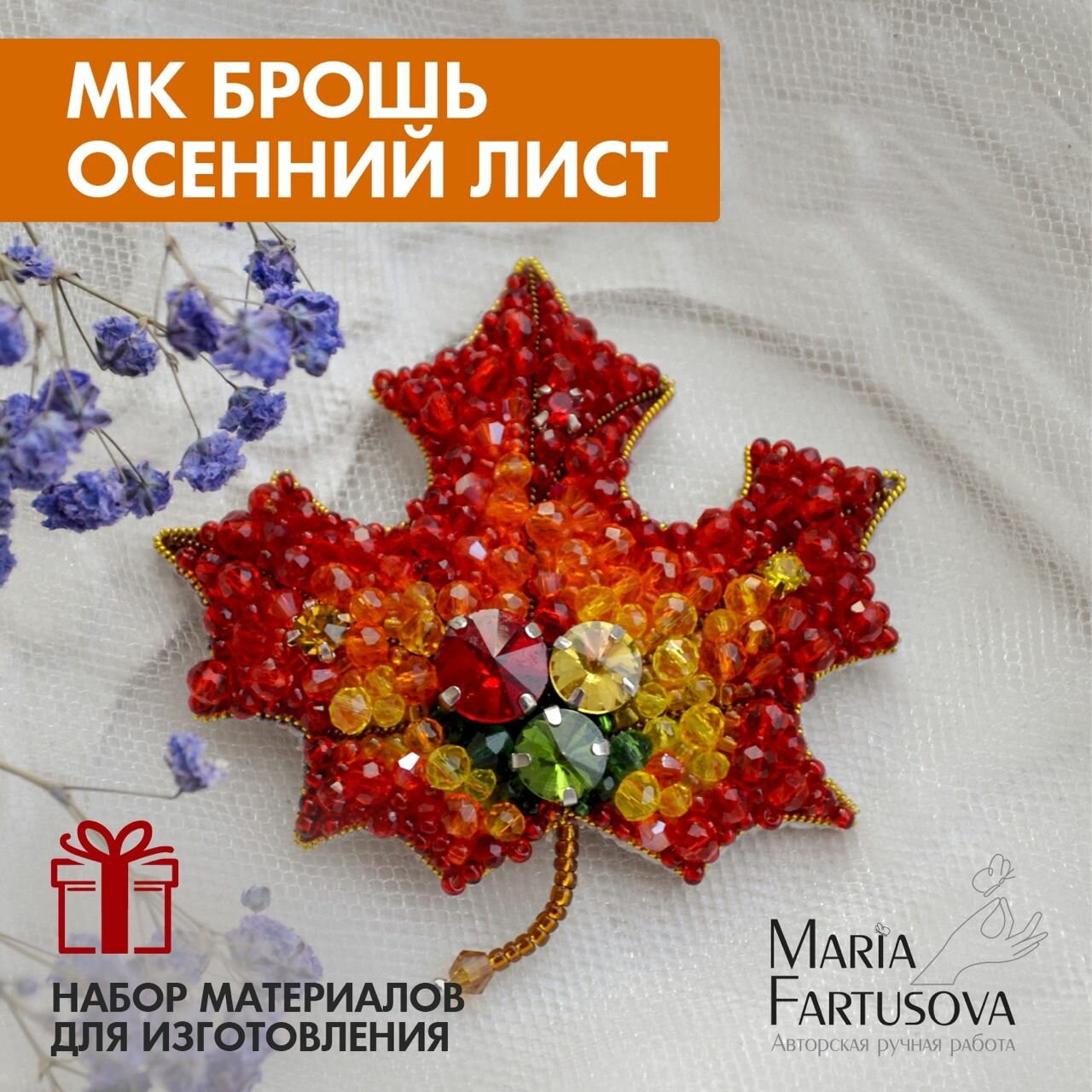 Набор для создания броши Осенний лист, мастер класс вышивания своими руками информация: