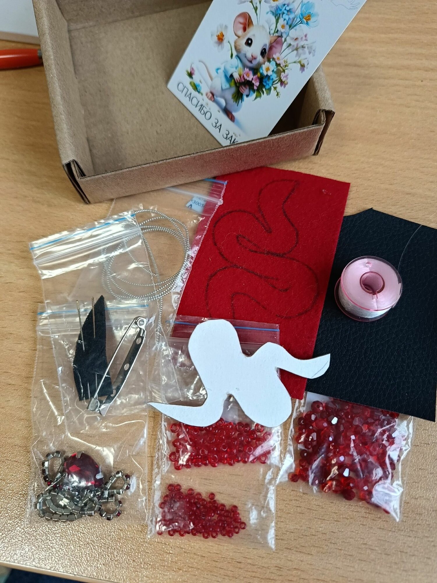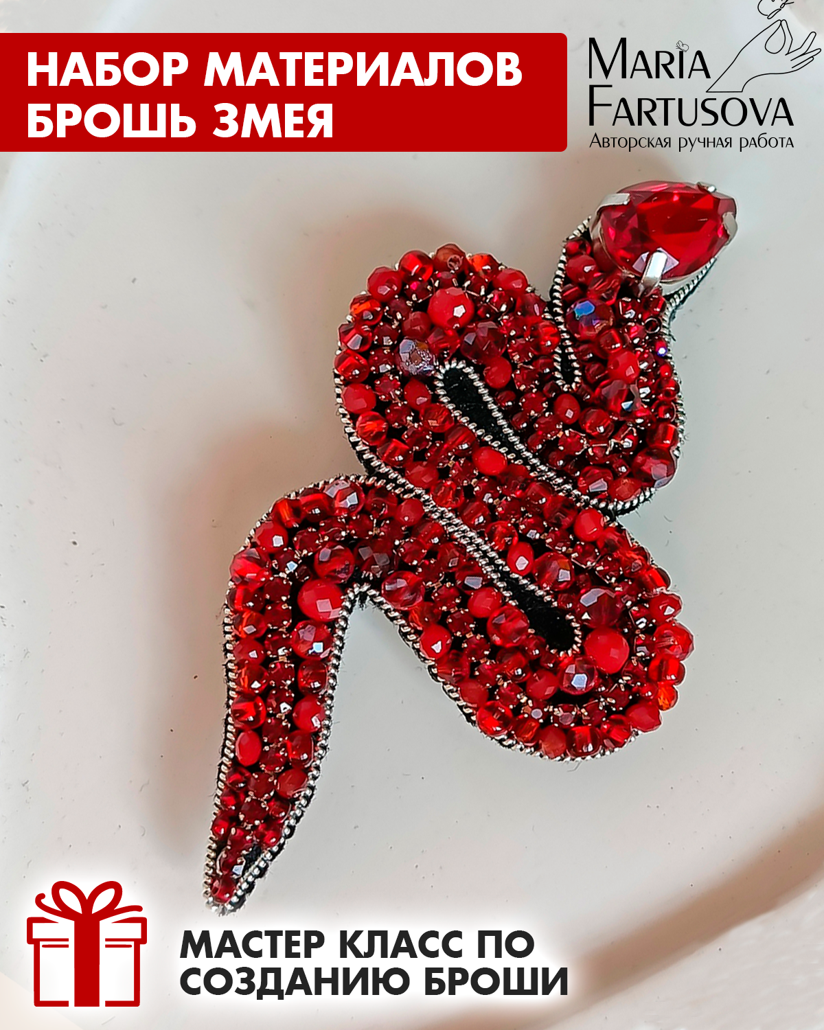 Набор для создания броши Красная Змея из бисера, творческий мастер-класс по вышиванию броши Красная Змея информация: