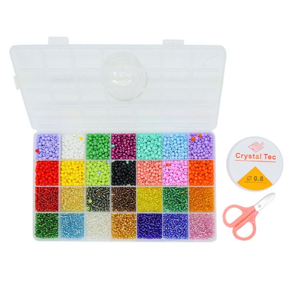 Отзывы на Большой набор 28 цветов бисера для плетения с силиконовой леской 0,8 мм и ножницами, размер органайзера 22,5 х 13,5 см BSD03/201288129