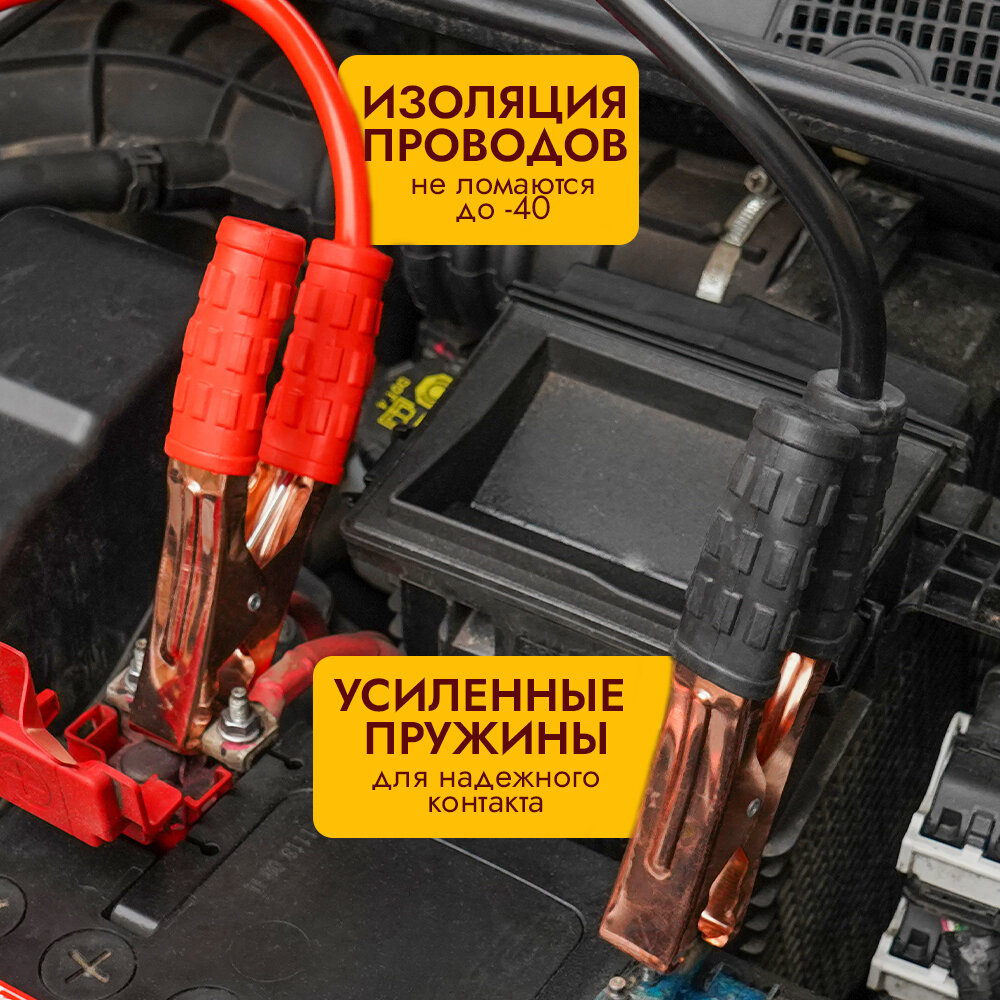 Провода для прикуривания автомобиля, 2 метра, 600А, 16мм2, резина.