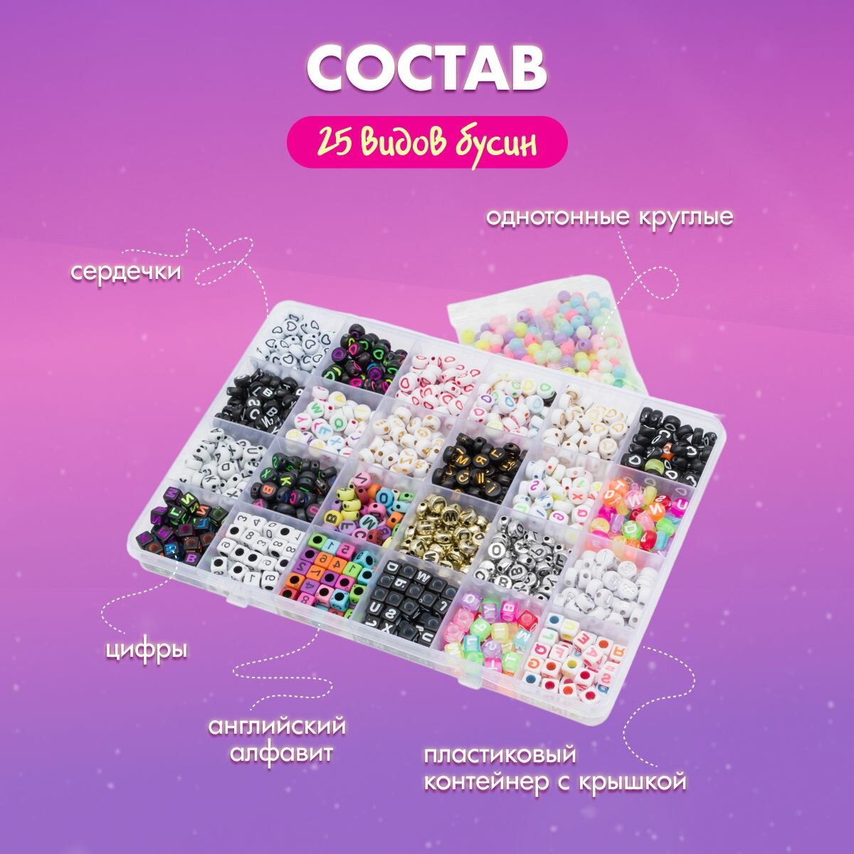Бусины для рукоделия набор ассорти английского Алфавита и сердец, Astra&Craft информация: