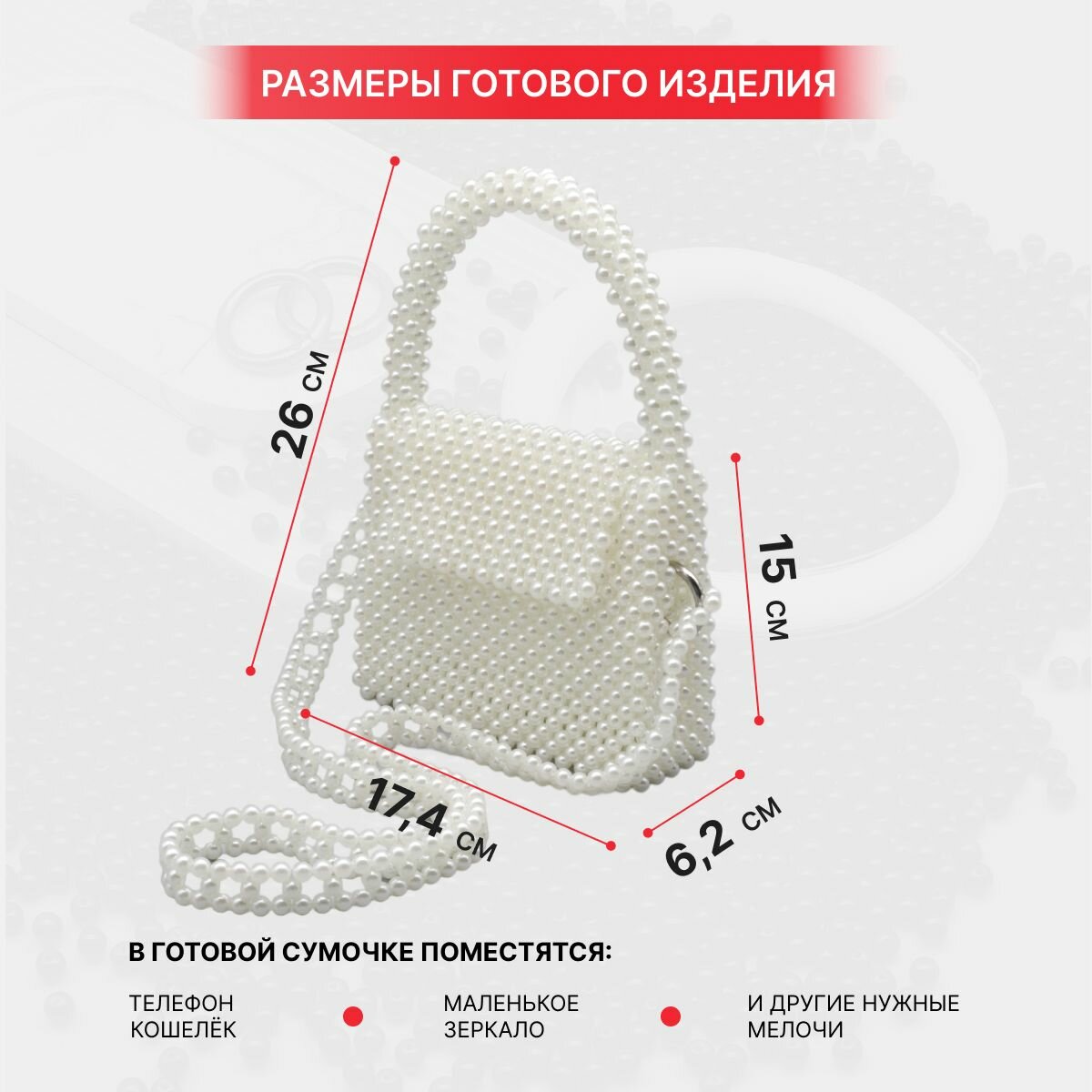 Набор для плетения сумки из бусин, 8 мм, Astra&Craft (белый жемчуг) информация: