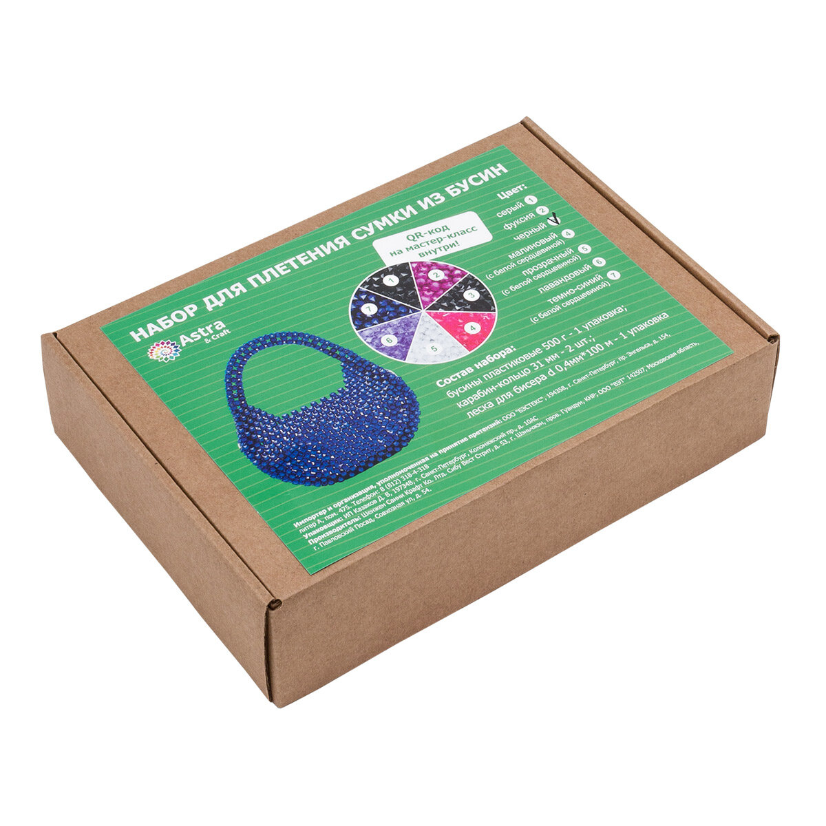 Набор для плетения сумки из бусин, акриловые, граненый куб, 10 мм, Astra&Craft (671 серый) 1 007 ₽