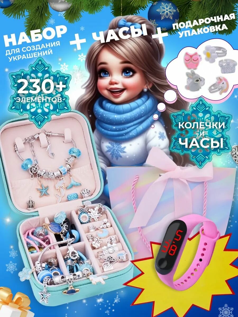 Подарочный набор для создания украшений с часами Litlantica, цвет голубой, 233 предмета информация: