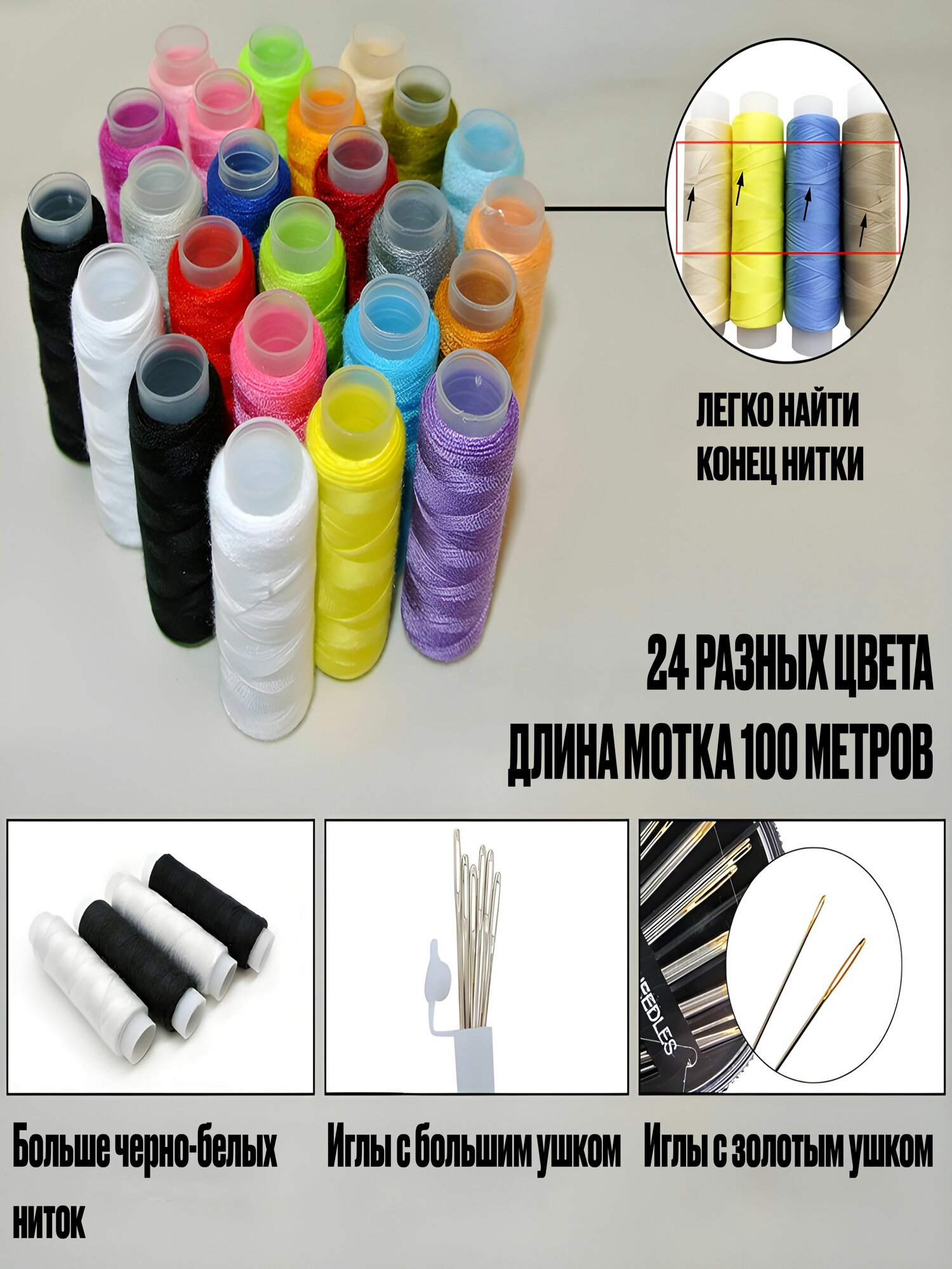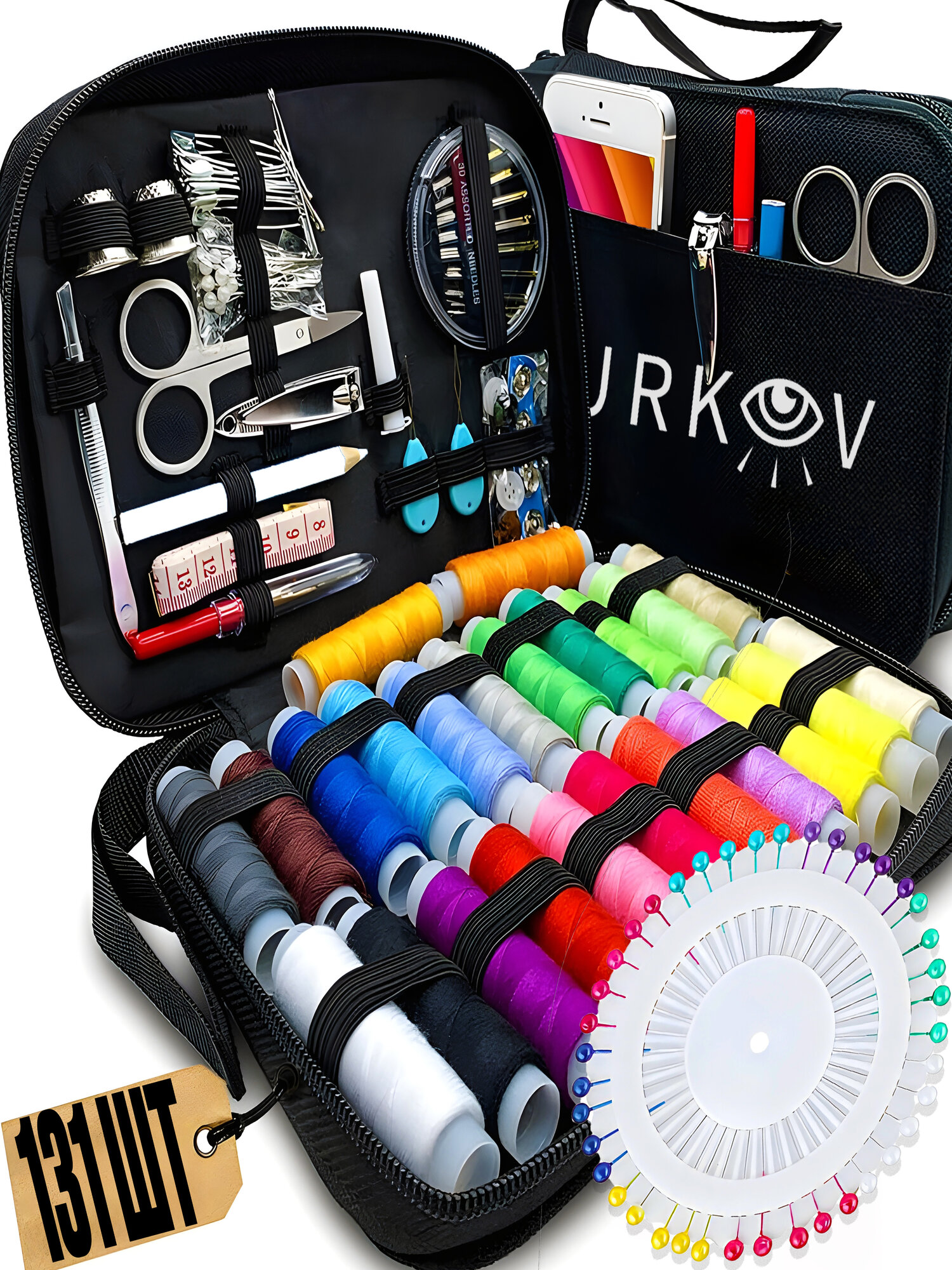 Отзывы на Швейный набор, набор для шитья дорожный, нитки для шитья 131 предмет, черный