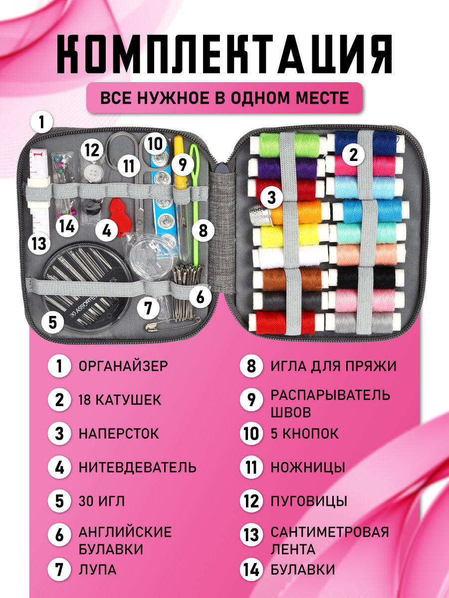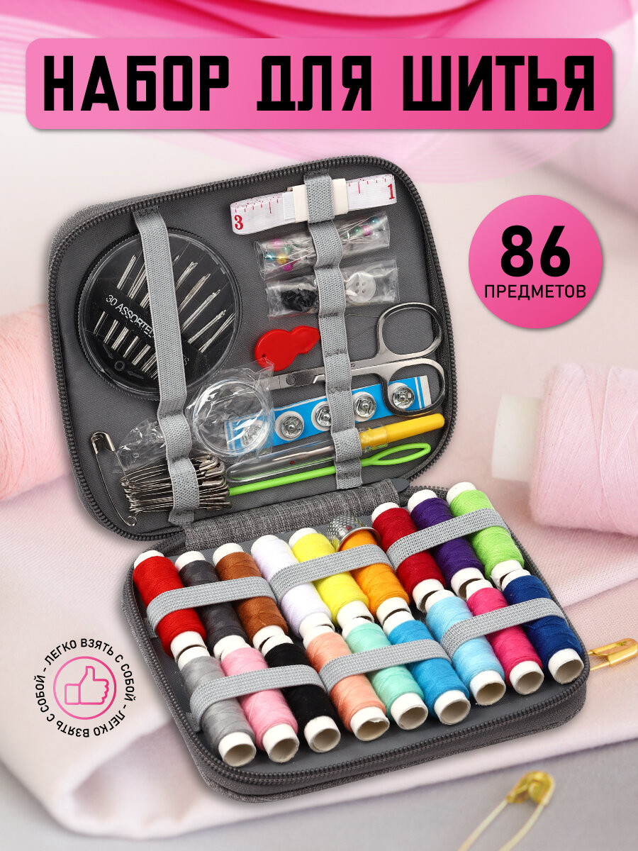 10 цен на Швейный набор ниток и иголок в органайзере 14*12 см (86 предметов)