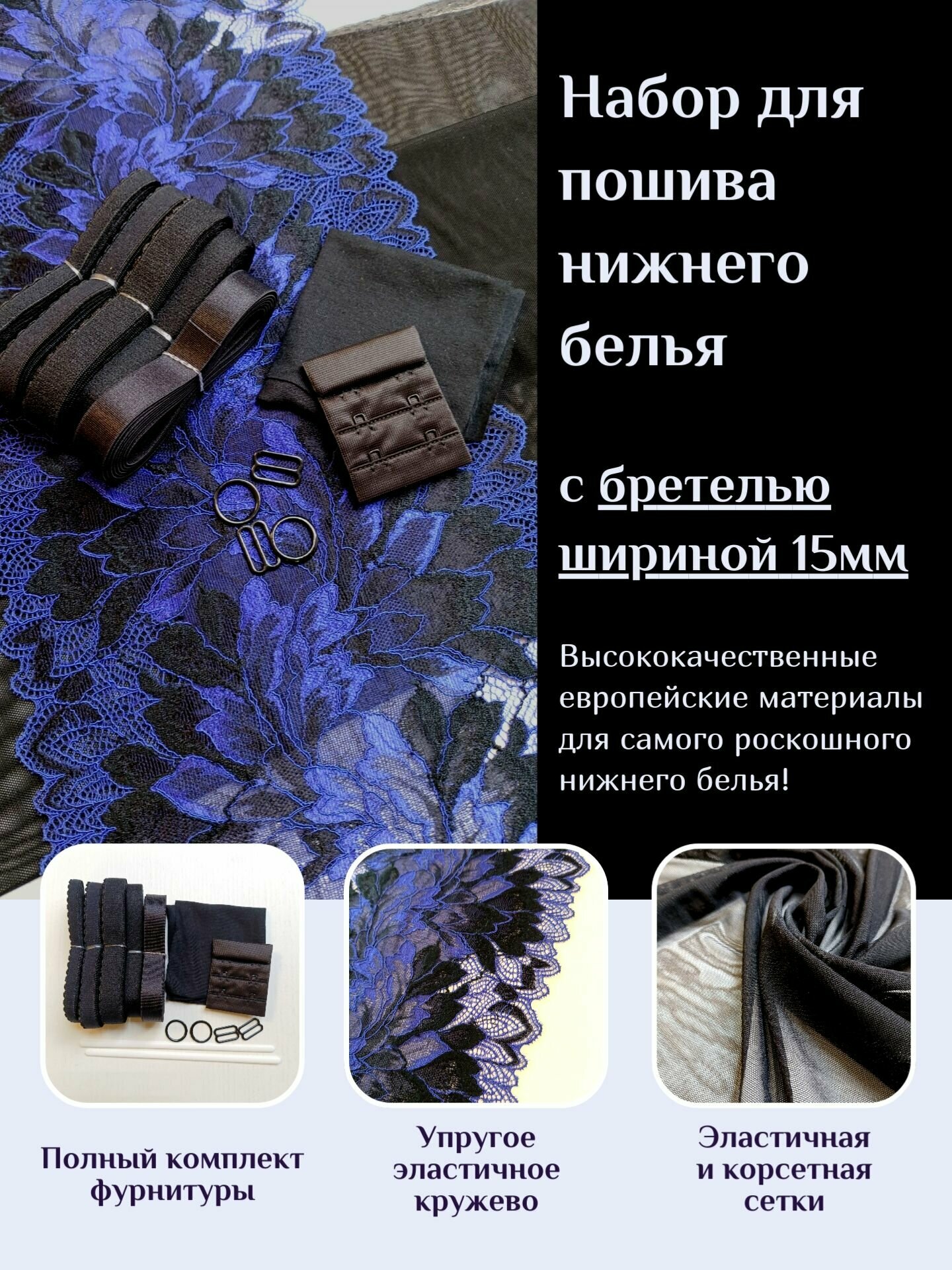 Отзывы на Набор для пошива нижнего белья с бретелью 15мм, василек с черным