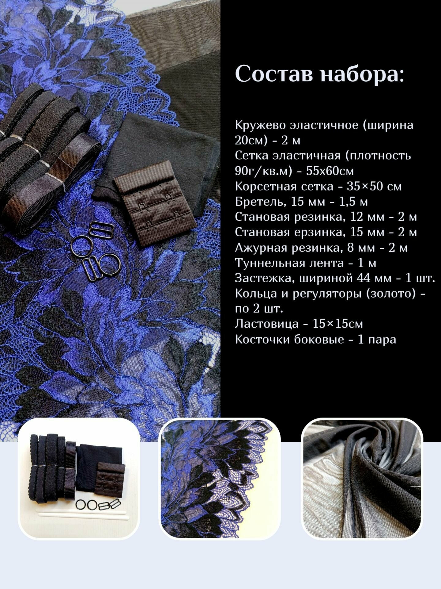 Набор для пошива нижнего белья с бретелью 15мм, василек с черным информация:
