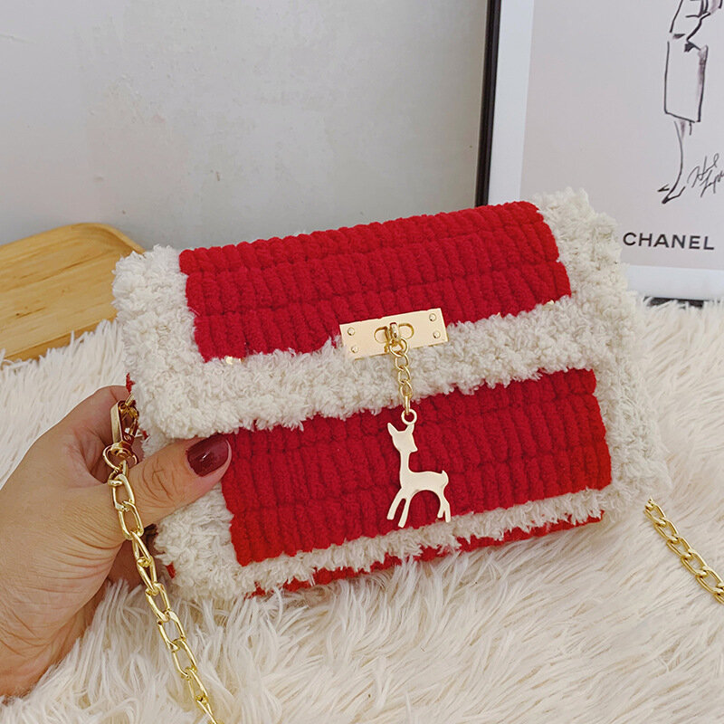 10 цен на Набор для вязания сумки по канве, "Aijia Crafts", красно-кремовый, с золотым подвесом оленем