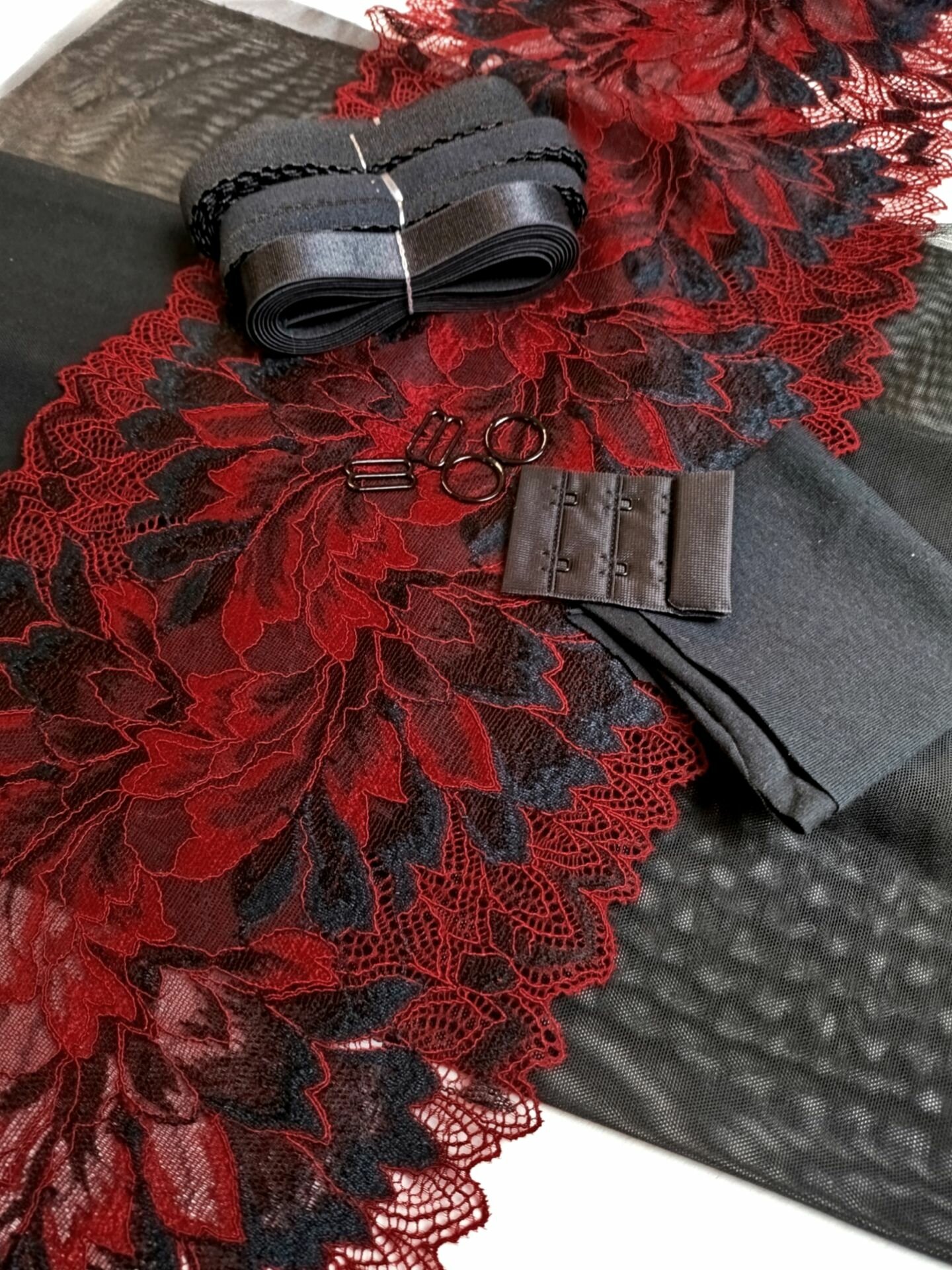 Отзывы на Набор для пошива нижнего белья с бретелью 15мм, черный с темно-красным