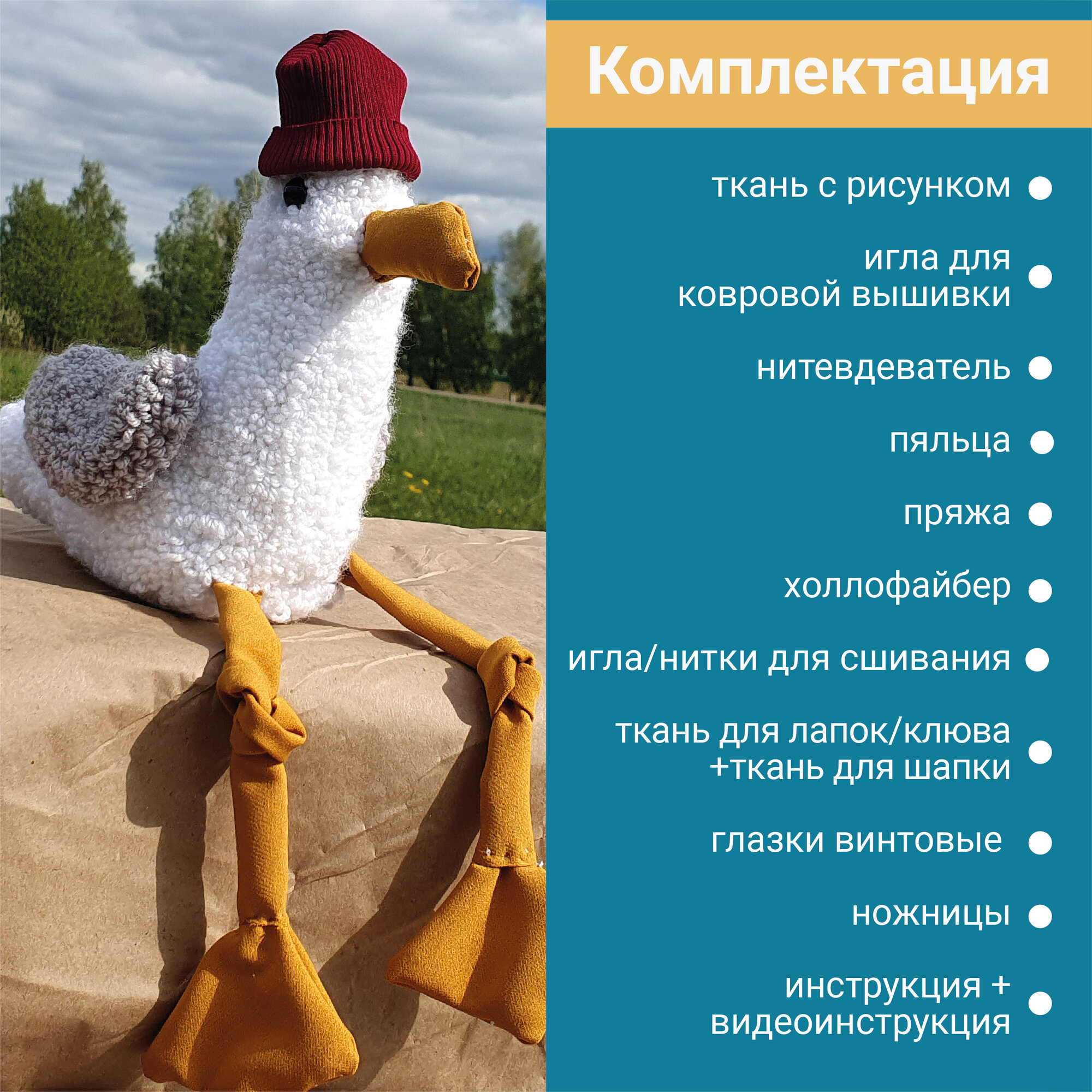 Набор для вышивания в ковровой технике, набор для шитья, игрушка своими руками, Чайка, высота 28 см, DIY, Punch Needle информация: