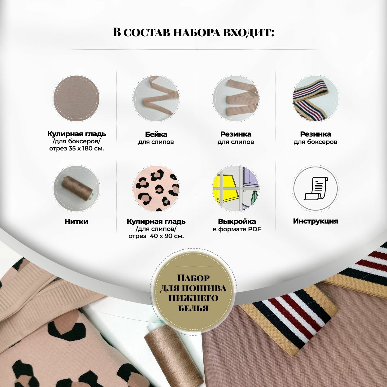 10 цен на Набор для пошива нижнего белья: женских и мужских трусов ( ткань, резинка, выкройка PDF в подарок)