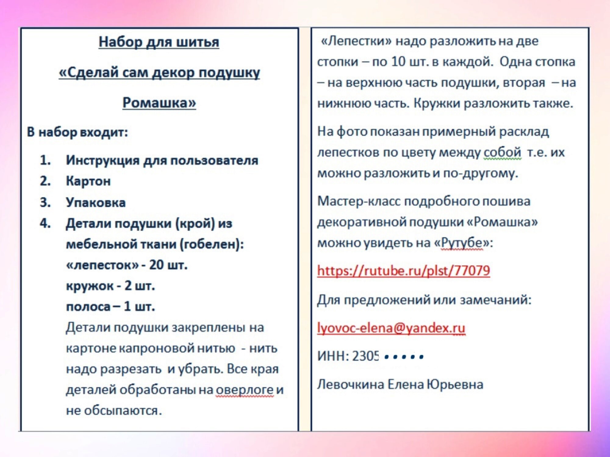 Отзывы на Набор для рукоделия "Подушка-цветочек Ромашка" 3, гобелен, размер - 37см (диаметр), 23 детали.