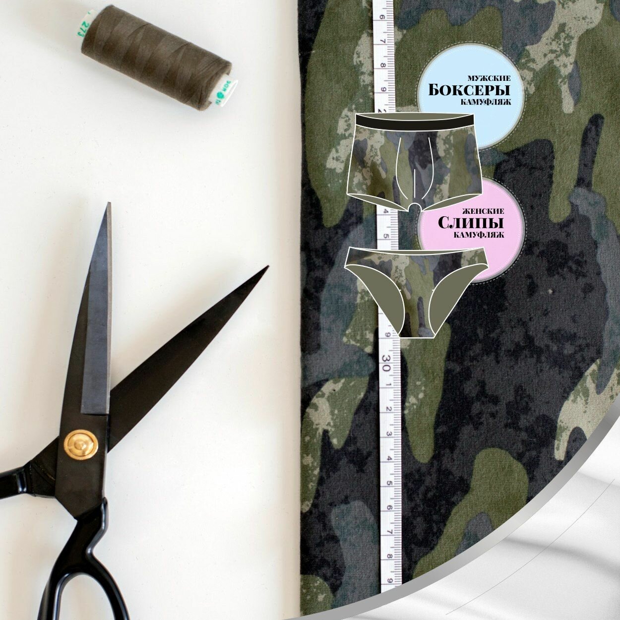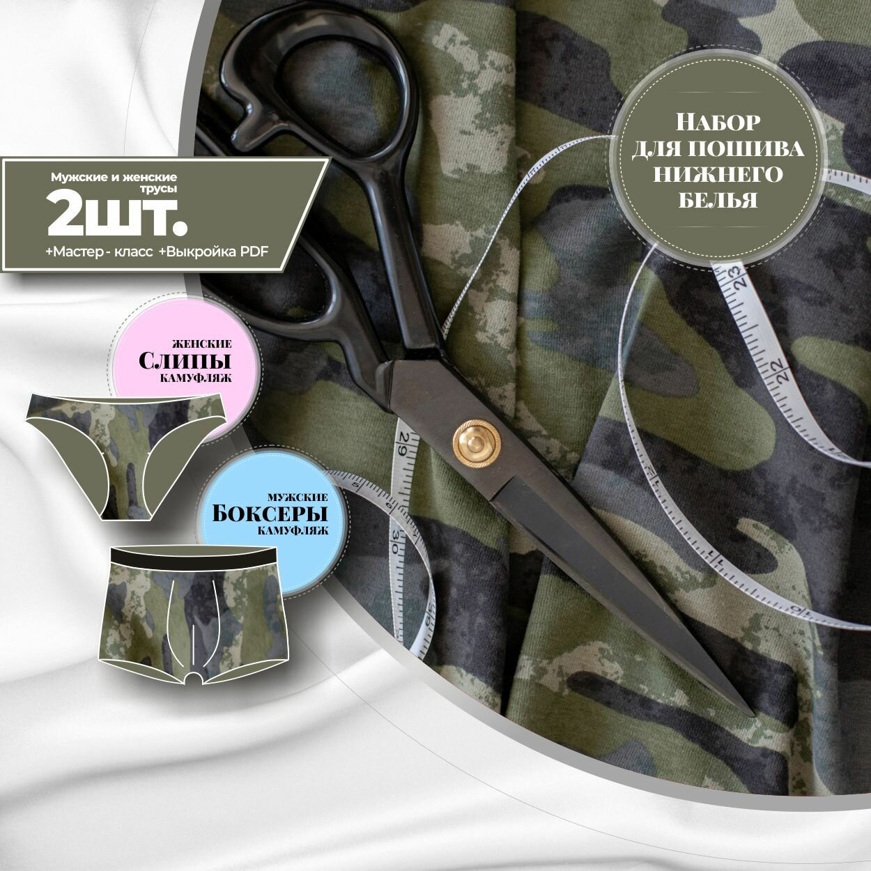 Набор для пошива нижнего белья: женских и мужских трусов камуфляж (ткань, резинка, выкройка PDF в подарок) информация: