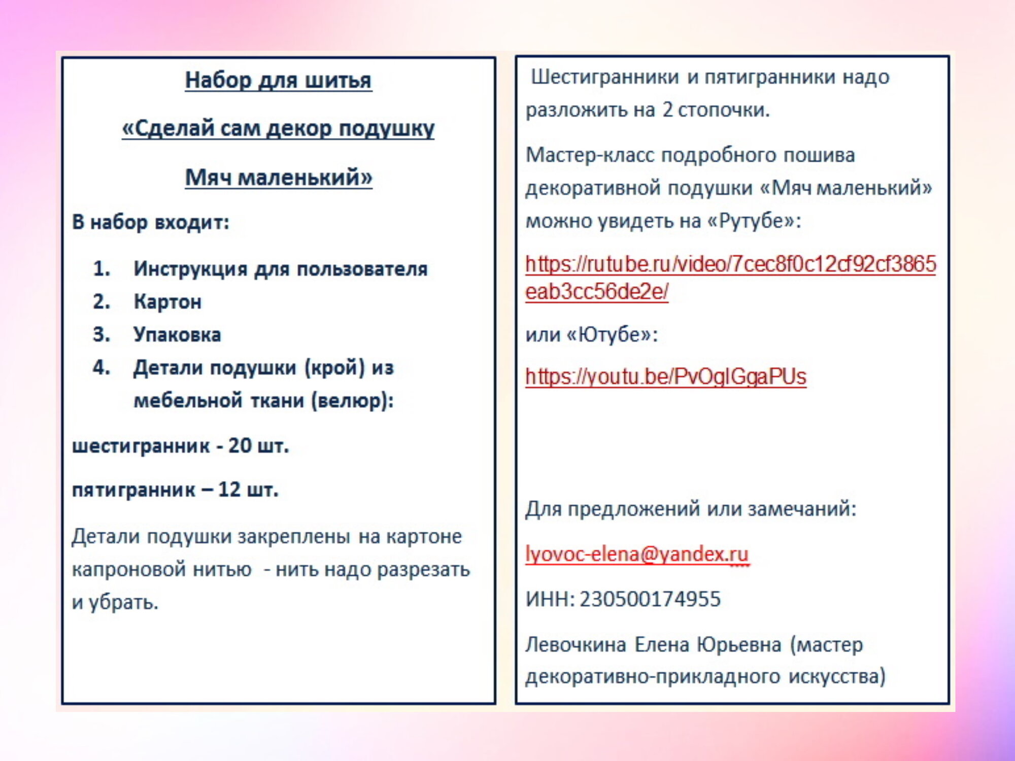 Отзывы на Набор для рукоделия "Мячик маленький" 5, велюр, размер - 15см (диаметр), 32 детали.