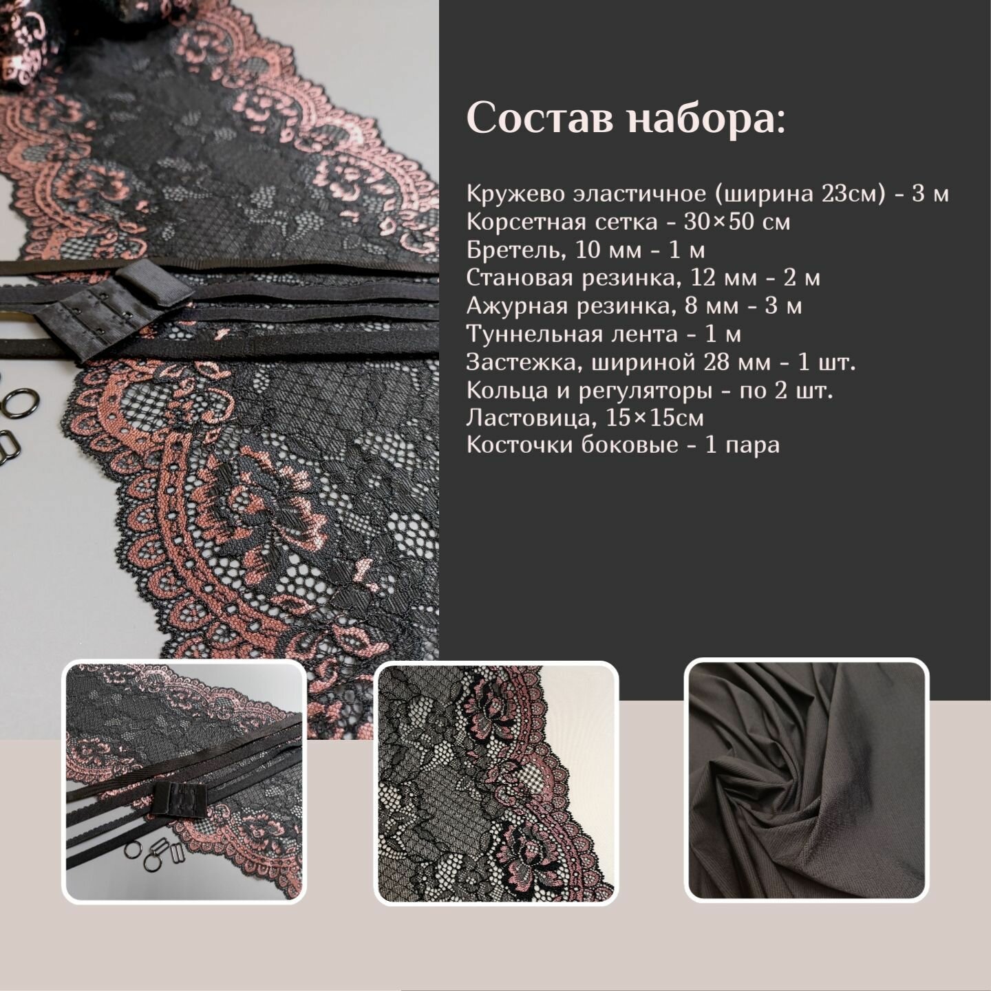 Набор для пошива нижнего белья, черный и кофейно-розовый, с тонкой бретелью информация: