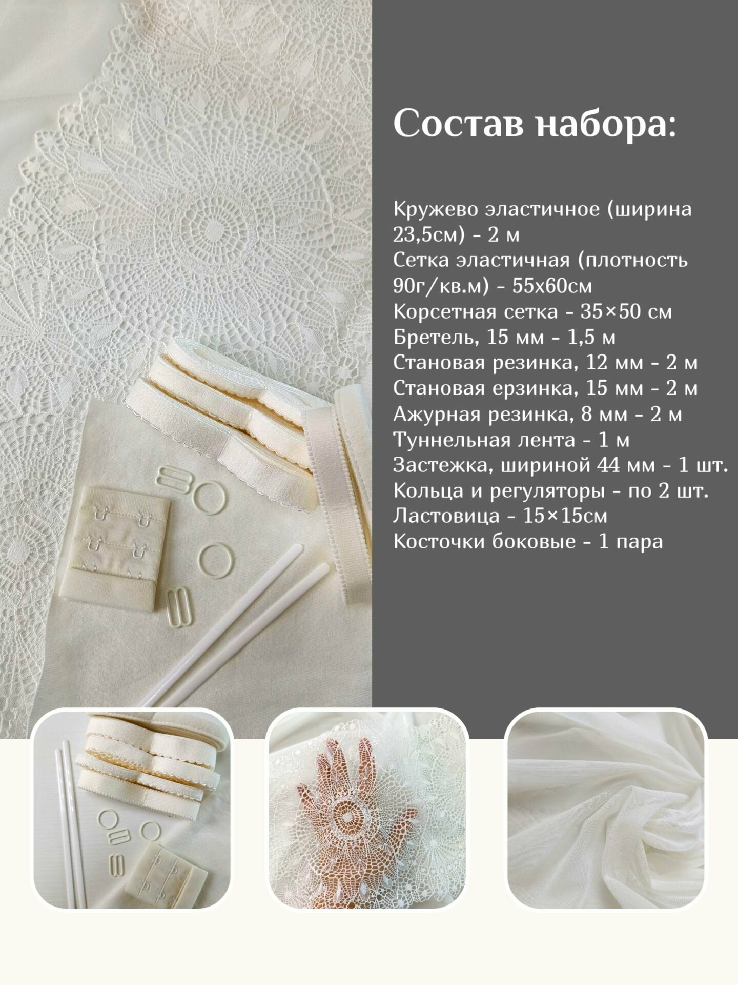 Отзывы на Набор для пошива нижнего белья с бретелью 15мм, молочная снежинка
