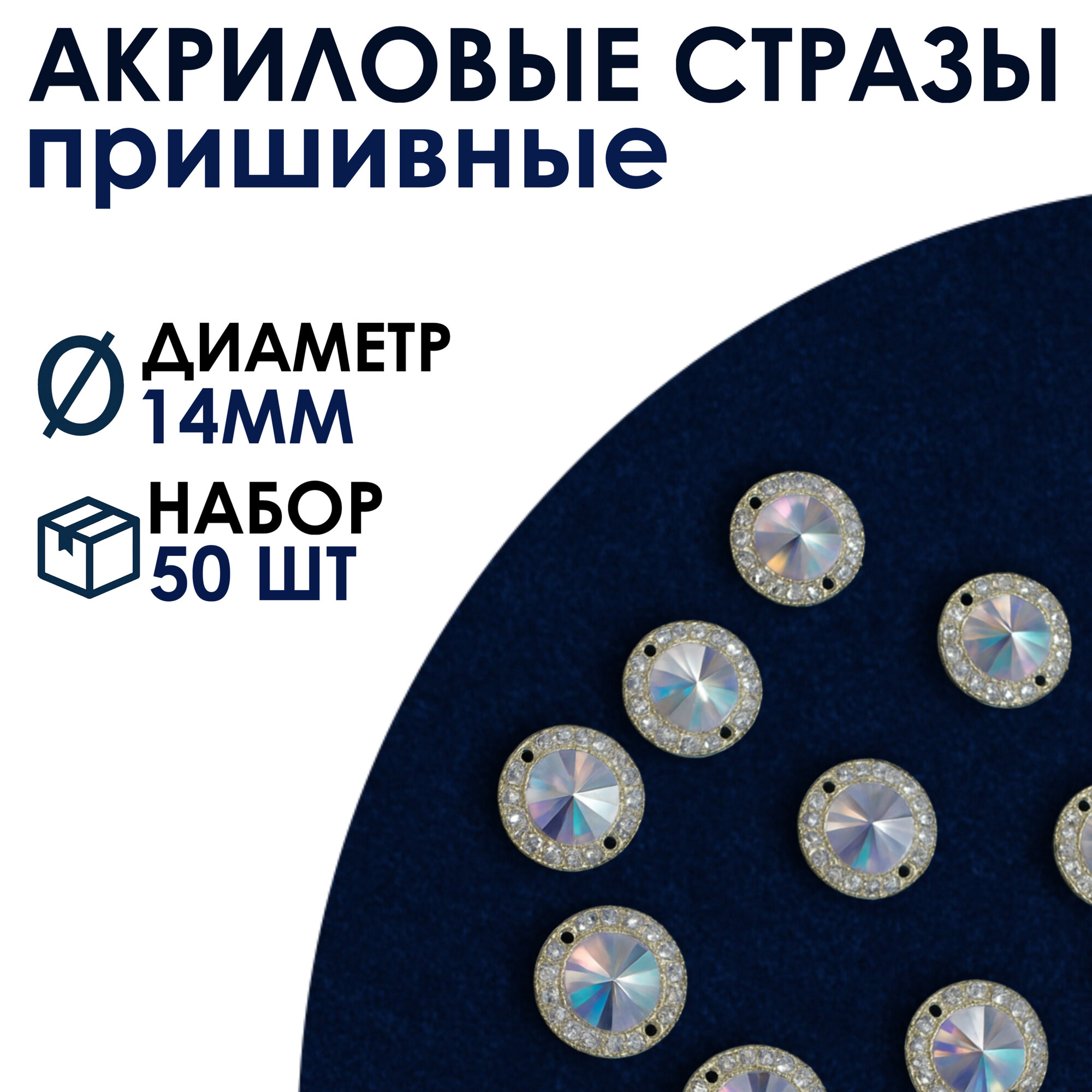 10 цен на Стразы пришивные, акриловые, блестящие, диаметр 14мм, набор 50 штук