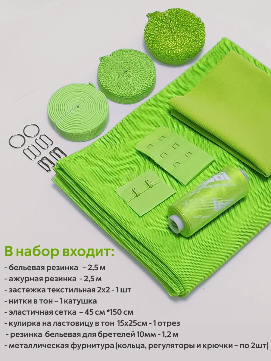 Набор для пошива нижнего белья (бралетт и трусики) из эластичной сетки Цвет - Неоновый лайм информация:
