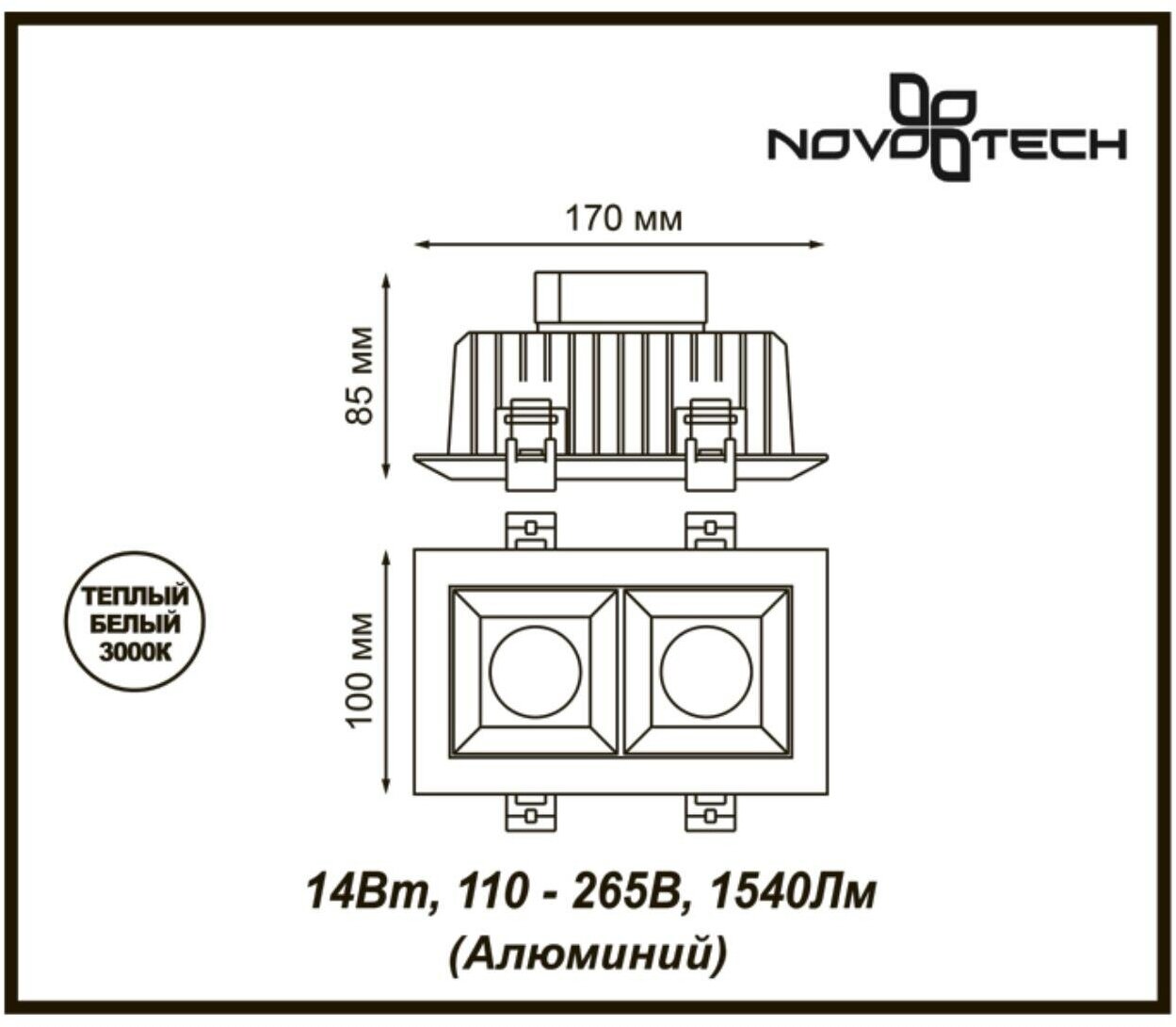 357846 Встраиваемый светодиодный светильник Novotech Antey информация: