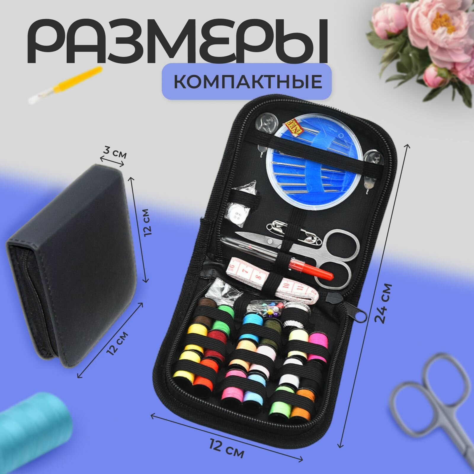 10 цен на Швейный набор на 27 предметов/ Органайзер дорожный для рукоделия, нитки иголки ножницы многофункциональный