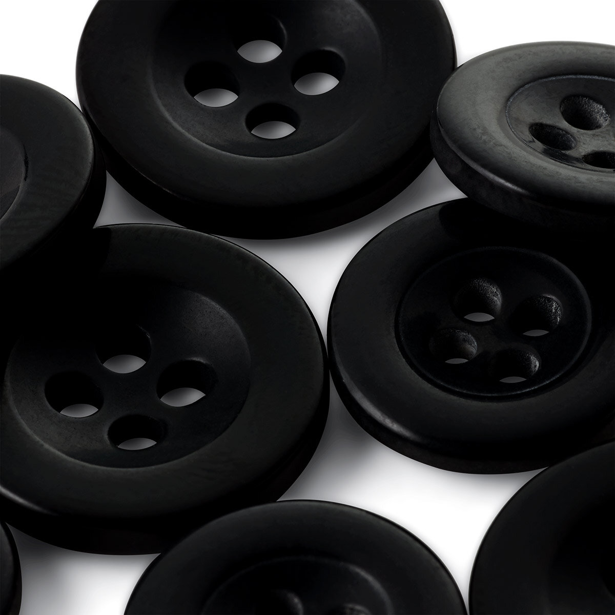 Отзывы на Пуговицы для брюк и юбок набор 15 мм (5 шт) и 17 мм (5 шт), 4 прокола, пластик, черные, Prym