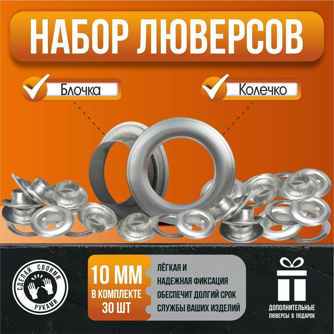 Люверсы для тента/баннера диаметр 10 мм, 30 шт. для тента, баннера, мягких окон. информация: