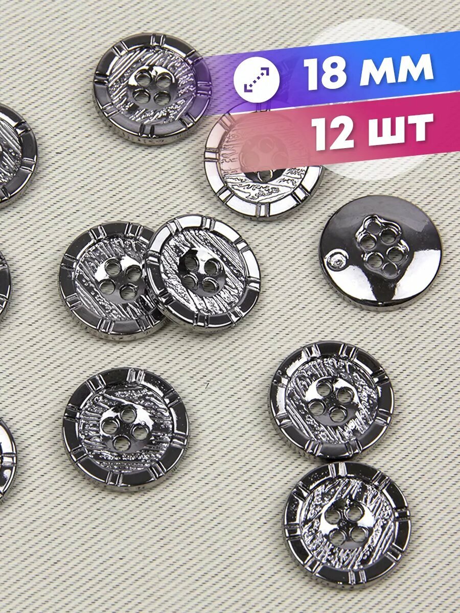 Декоративные пришивные пуговицы Mirtex, 12 штук, диаметр 18мм, цвет темный никель информация: