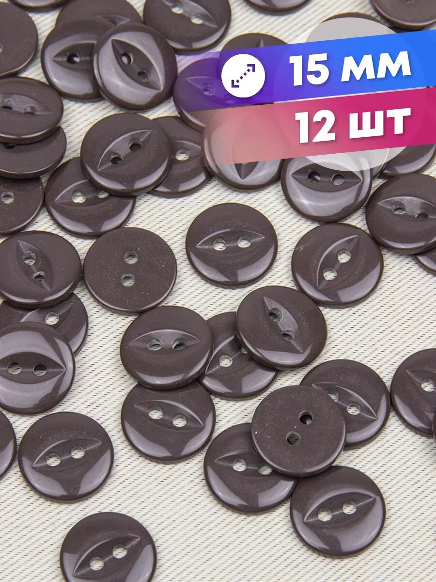 10 цен на Декоративные пуговицы из пластика, 12шт, темно-коричневые, диаметр 15мм, 1 упаковка