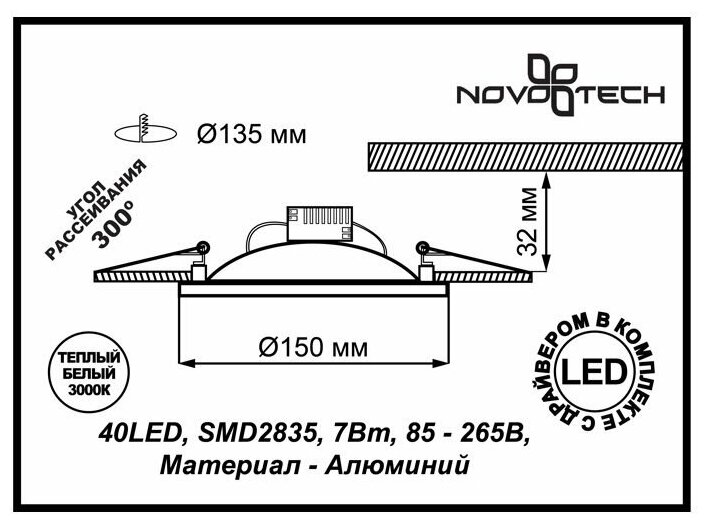 Отзывы на Встраиваемый светильник NOVOTECH GESSO 357496 40ХLEDХ7W;белый;белый