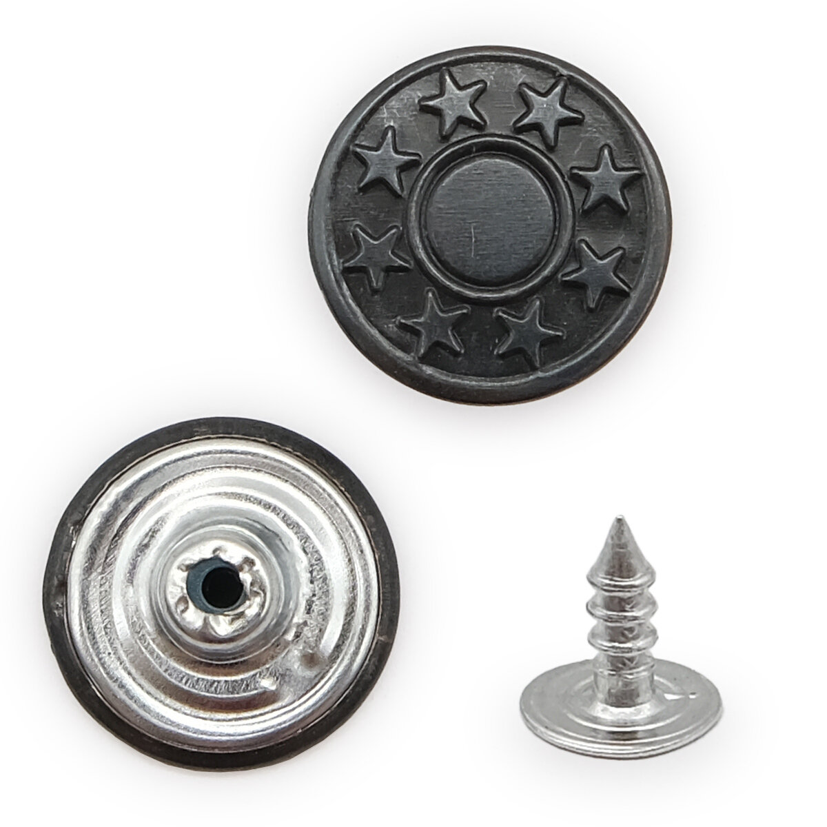 Пуговицы для джинсов металлические '8 звезд', 17 мм, 100 шт, на фиксированной ножке, NEW STAR (черный никель) 343 ₽