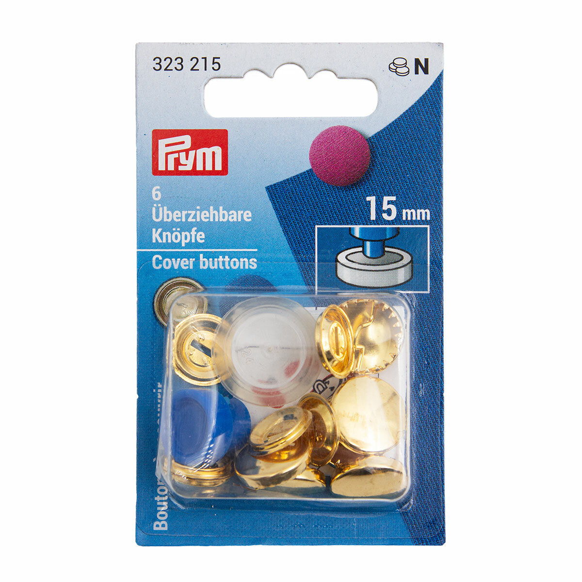 10 цен на Пуговицы под обтяжку тканью 15 мм (6 шт) + инструмент для обтяжки пуговиц, Prym