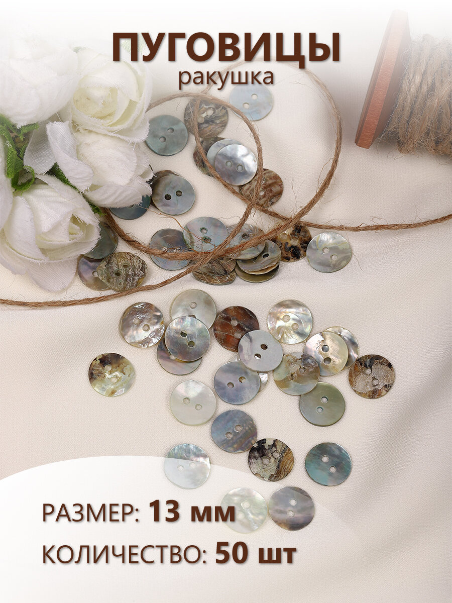 10 цен на Пуговицы перламутр (ракушка) TBY.320.20 цв. белый 20L-13мм, 2 прокола, 50шт