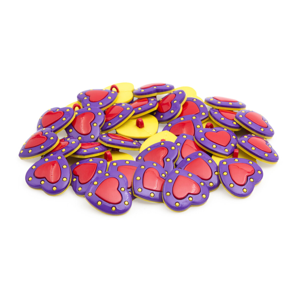 Пуговица 'Сердце' 36L (23мм) на ножке, пластик (504/218/171 темно-фиолетовый/красный/желтый), 36 шт информация: