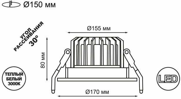 | Ширина/диаметр врезного отверстия | 150 мм |