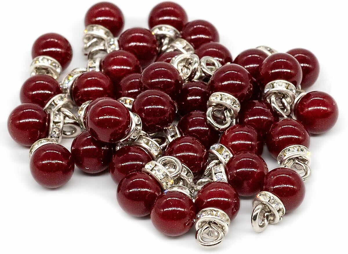 10 цен на GE18 Пуговица-жемчужина 13L (8мм) на ножке со стразами, пластик/металл (red (красный)), 36 шт
