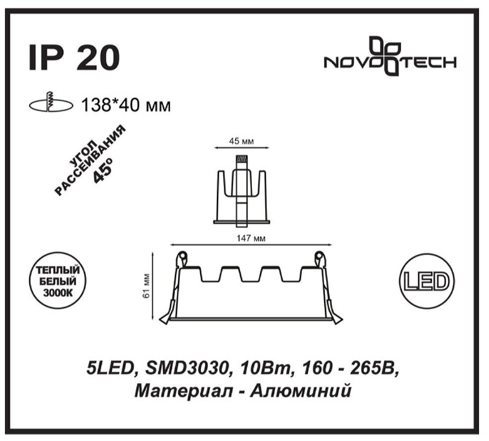 NOVOTECH Встраиваемый светильник Antey 357621 NOVOTECH 3 310 ₽