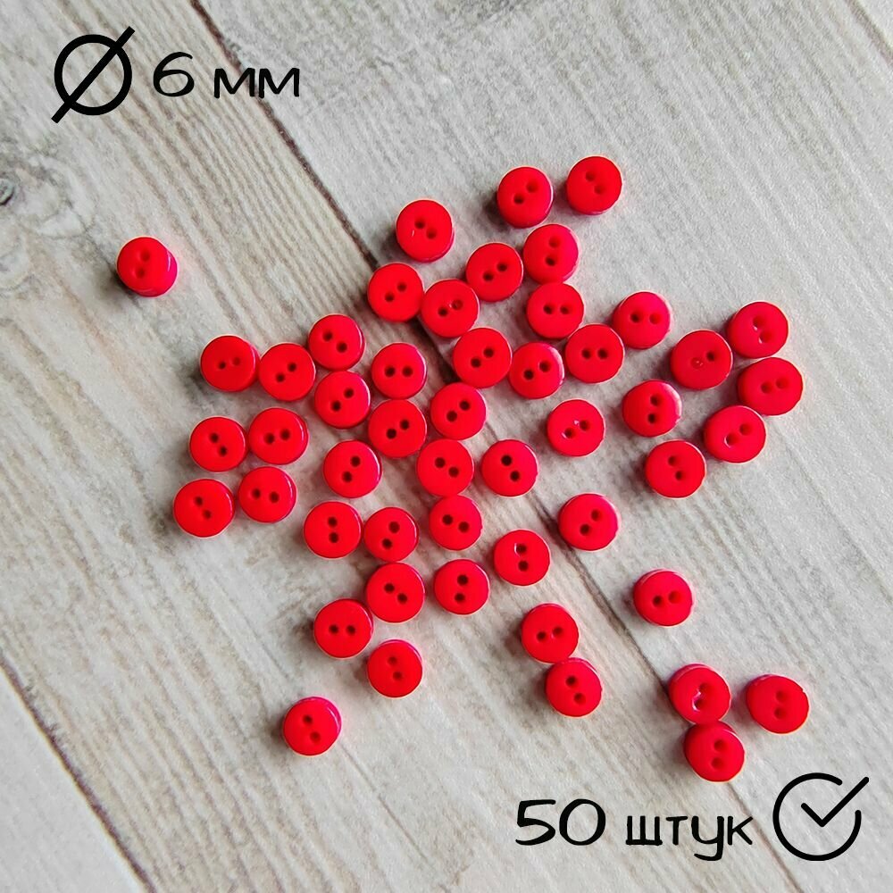 Пуговицы пластиковые круглые для творчества, цвет красный, набор 50 шт. 6 мм / Для кукол и игрушек, для хобби информация: