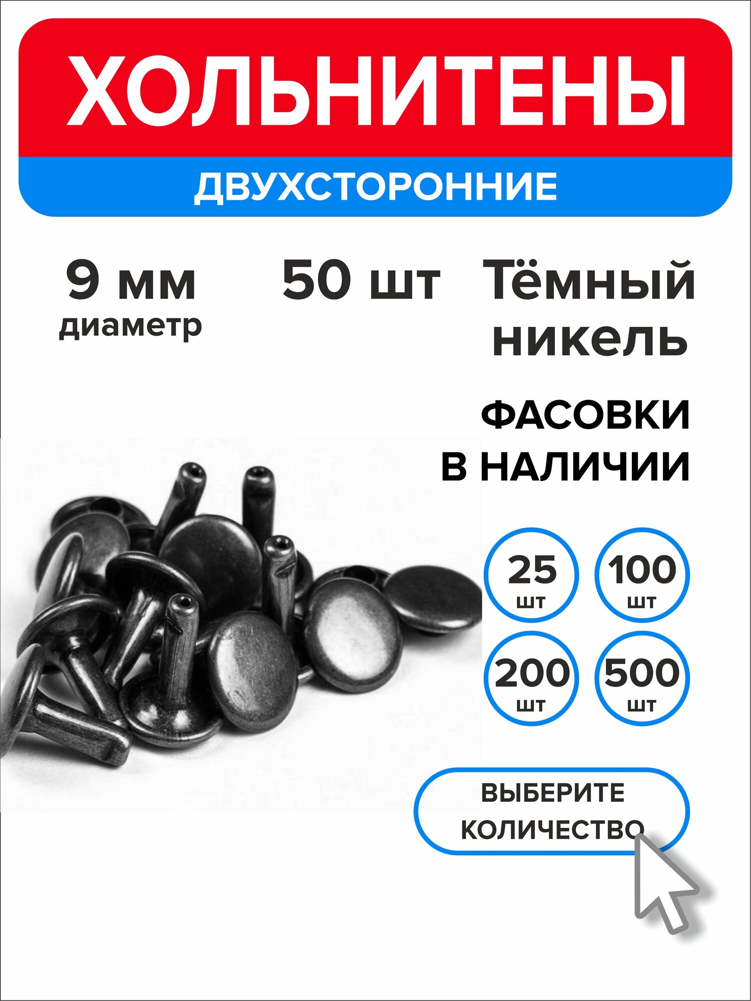 Хольнитены двухсторонние 9 мм, заклепки темный никель 50 штук информация: