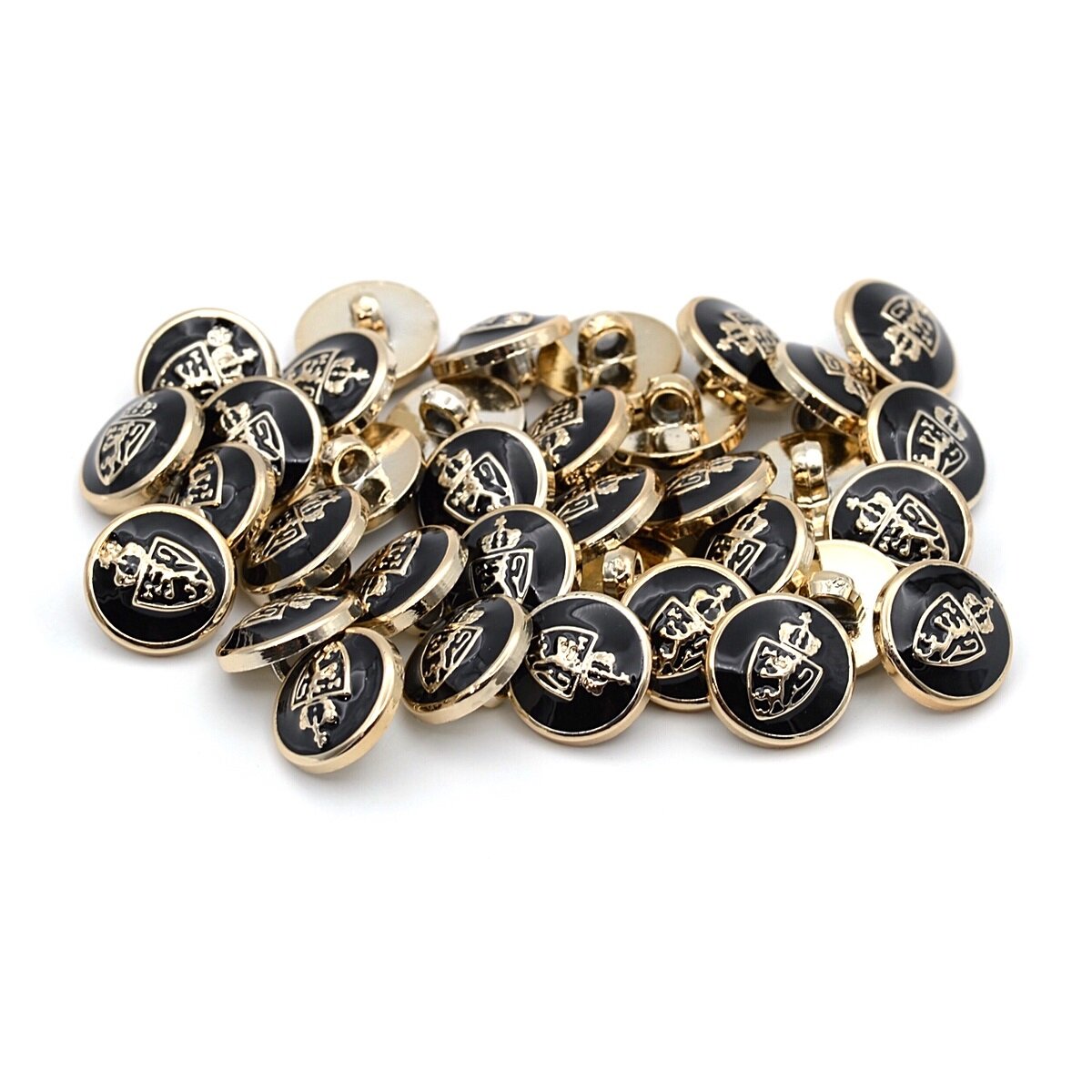 Отзывы на PS39 Пуговица 'Герб' 24L (15 мм), на ножке, пластик под металл (черный, золото), 36 шт