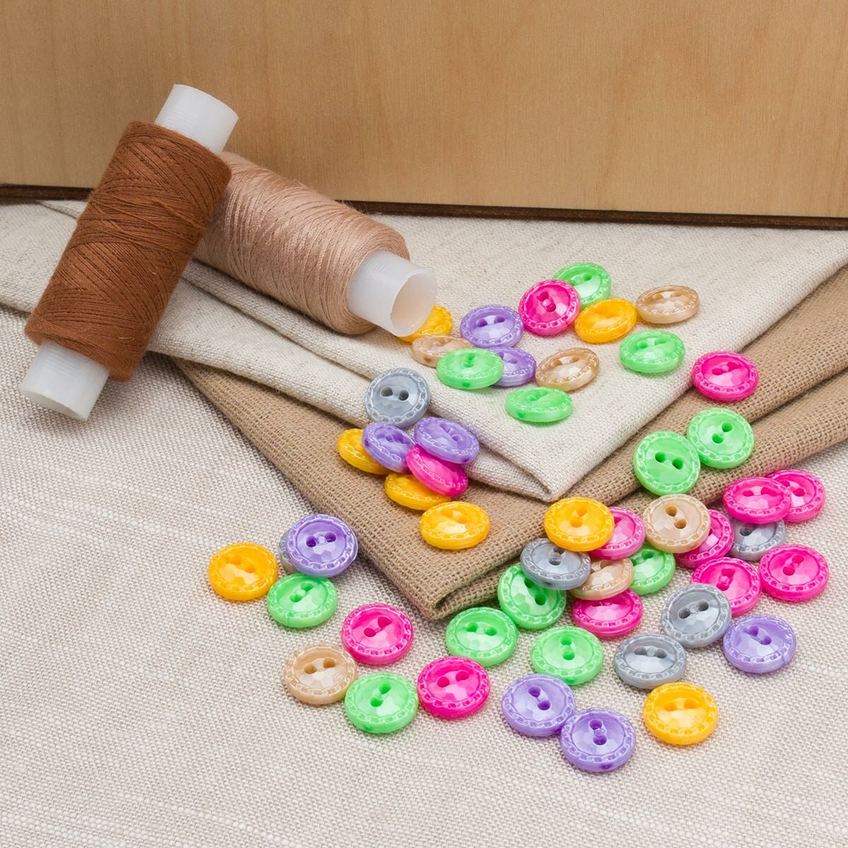 Отзывы на Пуговицы 2 прокола пластиковые 'Цветное ассорти', диаметр 11,5 мм, 6 цветов, набор 52 шт